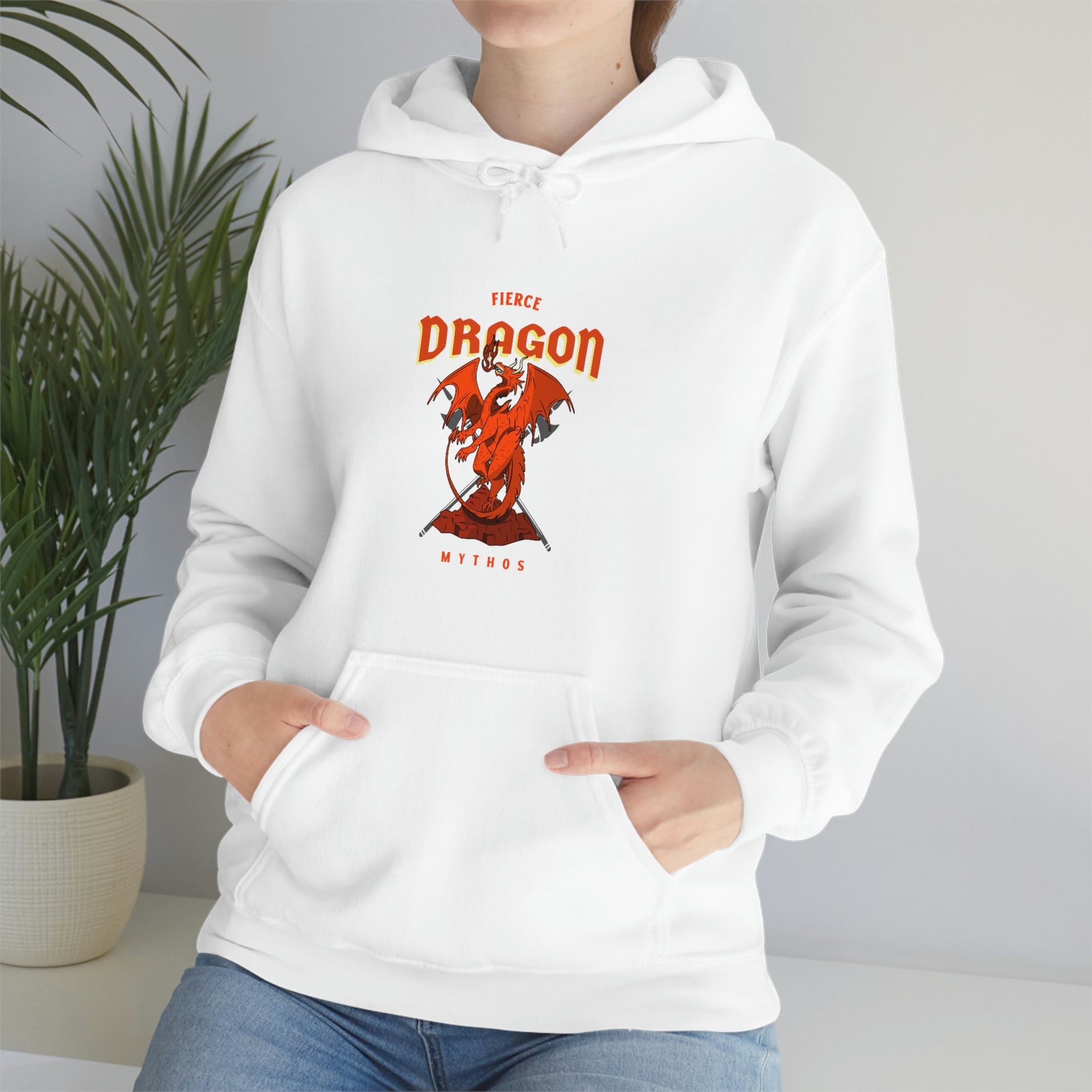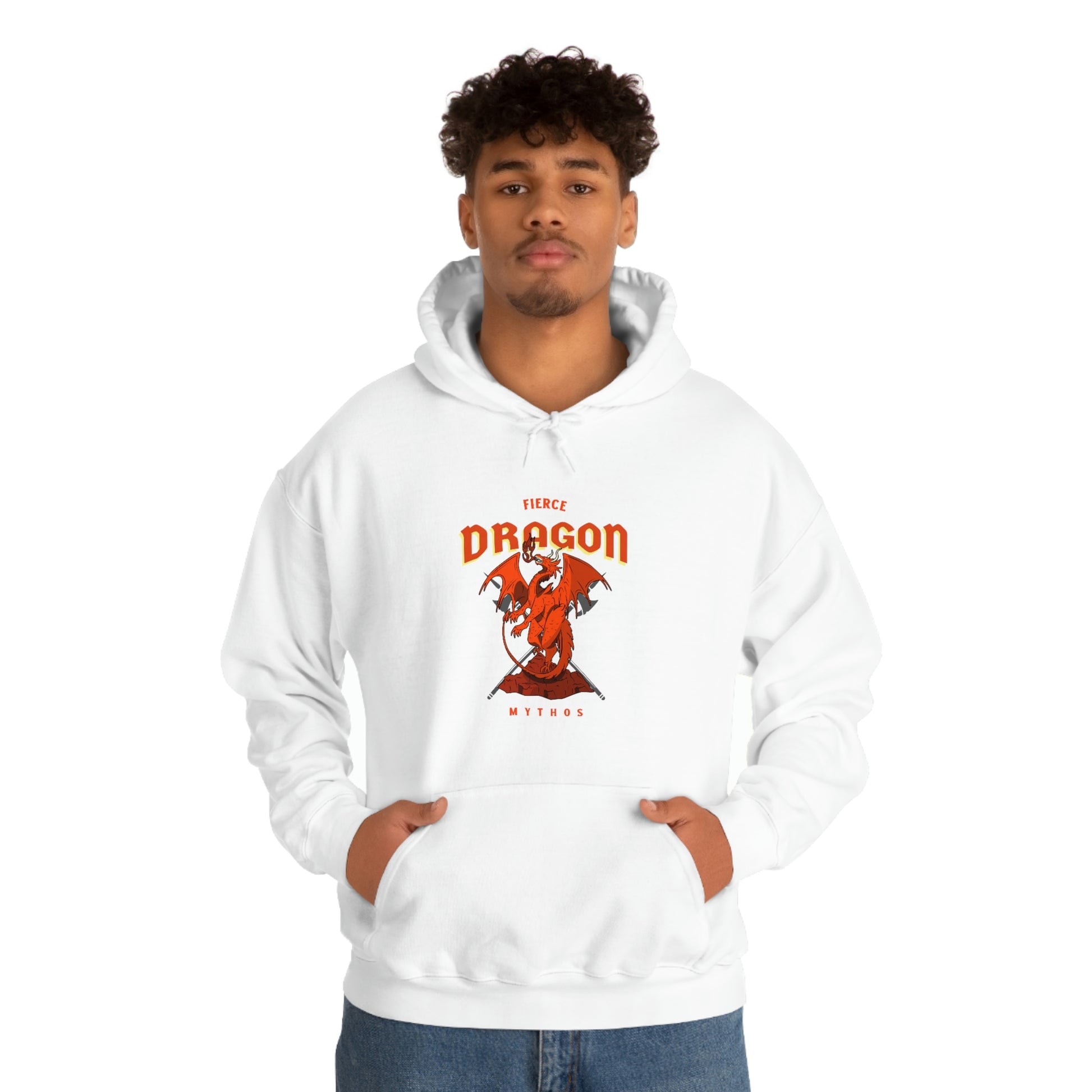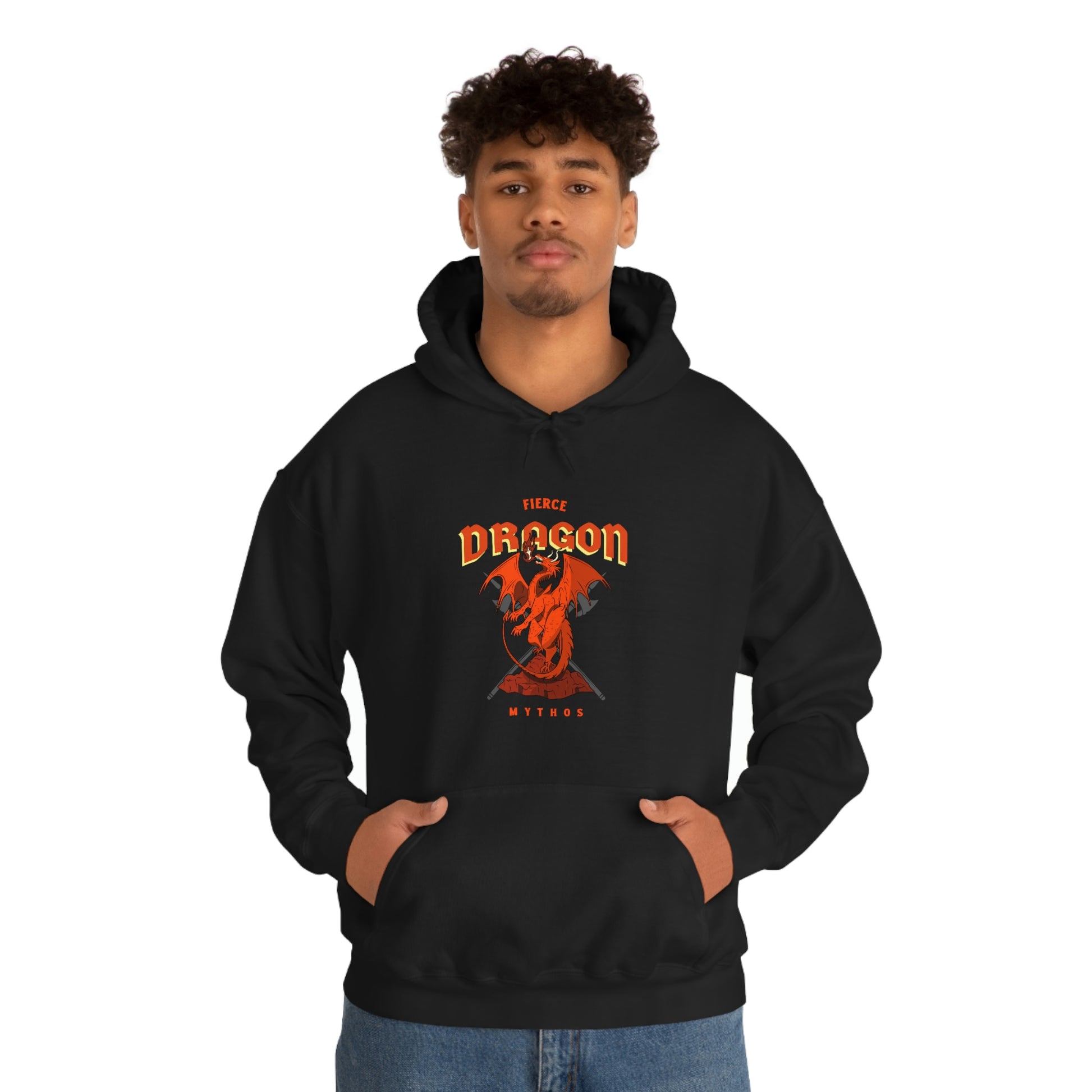 This Fierce Dragon unisex heavy blend hoodie is relaxation itself. Made with a thick blend of cotton and polyester, it feels plush, soft and warm, a perfect choice for any cold day. In the front, the spacious kangaroo pocket adds daily practicality while the hood's drawstring is the same color as the base sweater for extra style points.