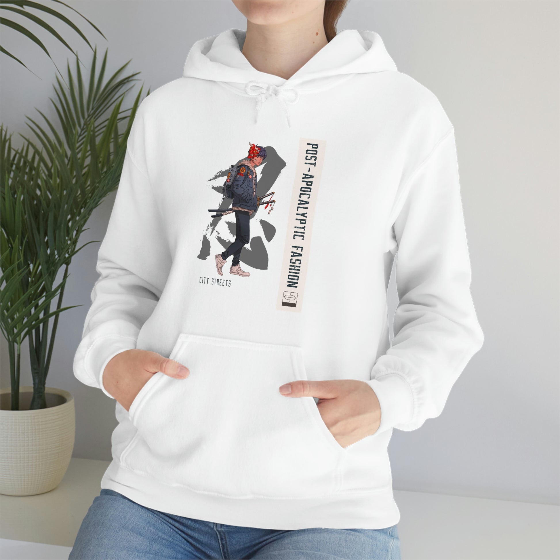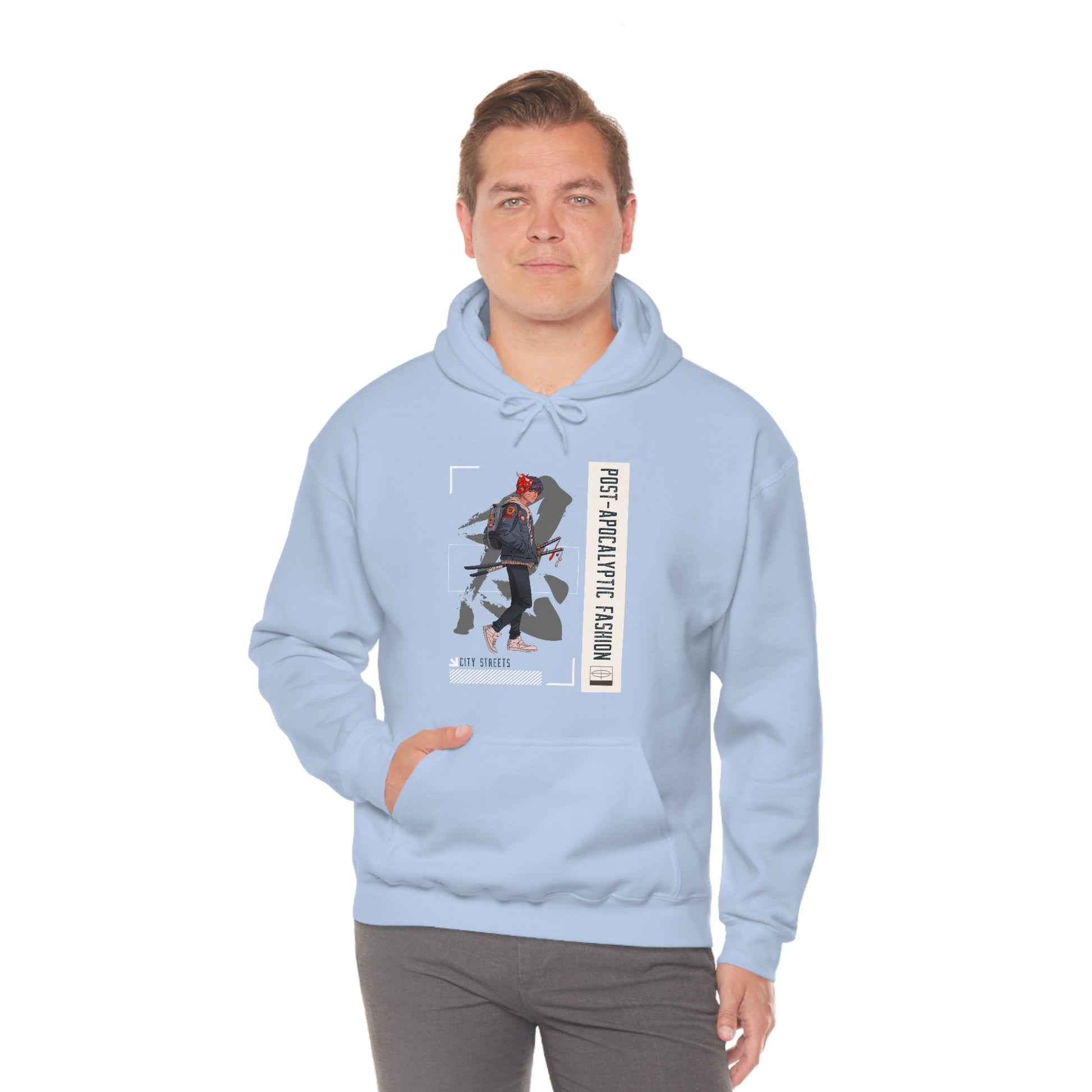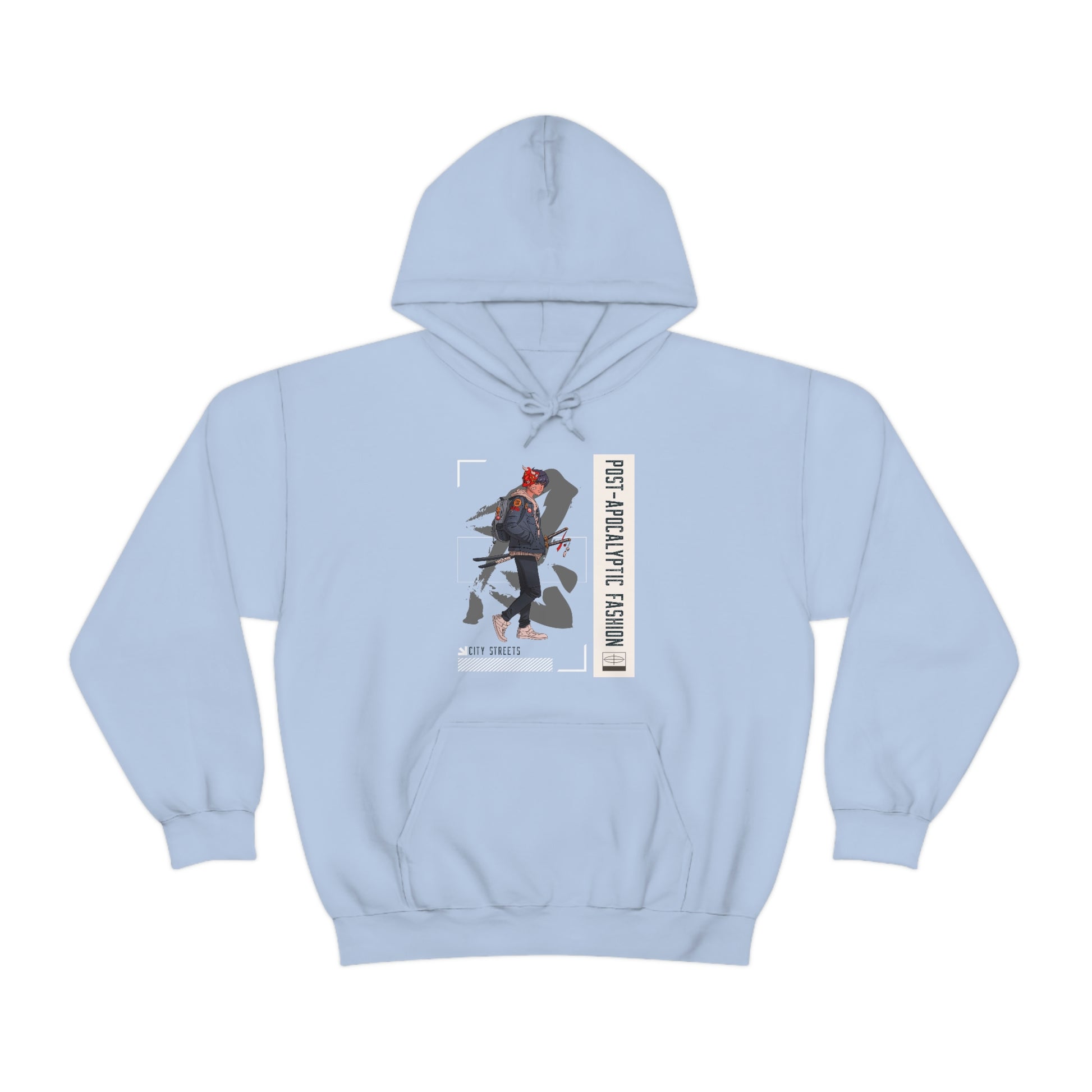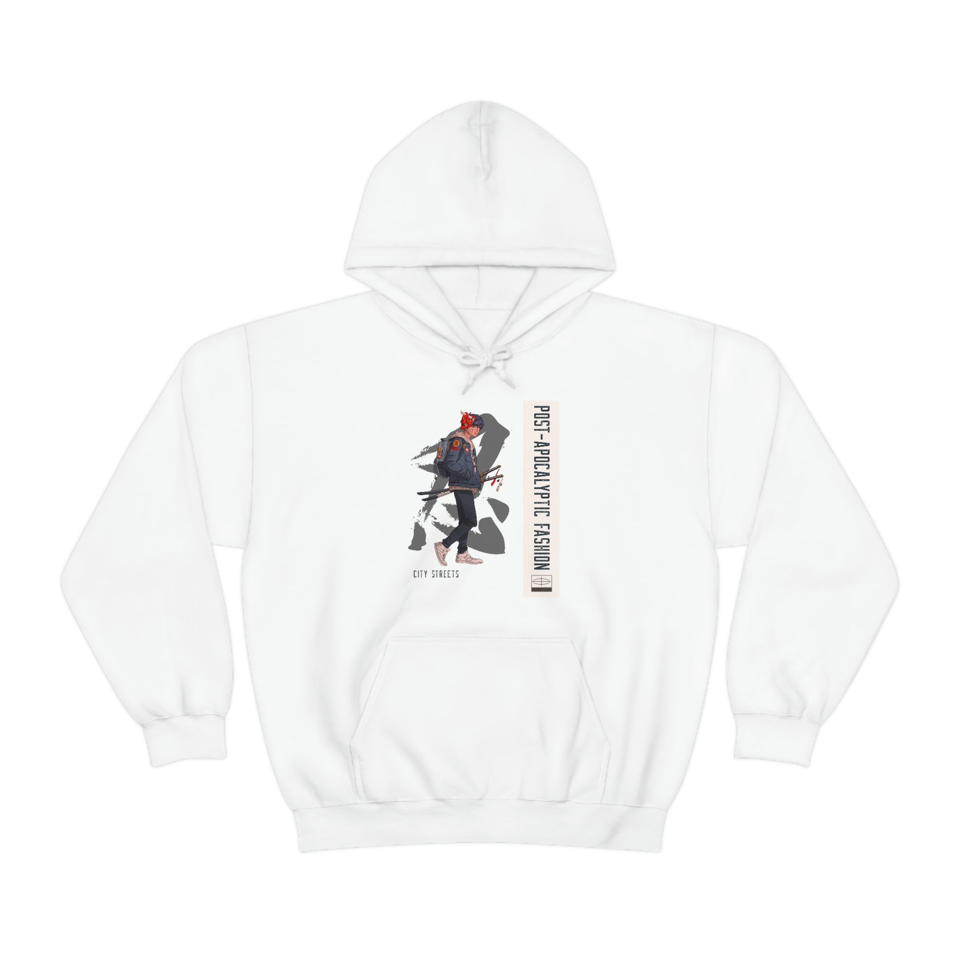 This Post Apocalyptic unisex heavy blend hoodeie is relaxation itself. Made with a thick blend of cotton and polyester, it feels plush, soft and warm, a perfect choice for any cold day. In the front, the spacious kangaroo pocket adds daily practicality while the hood's drawstring is the same color as the base sweater for extra style points.